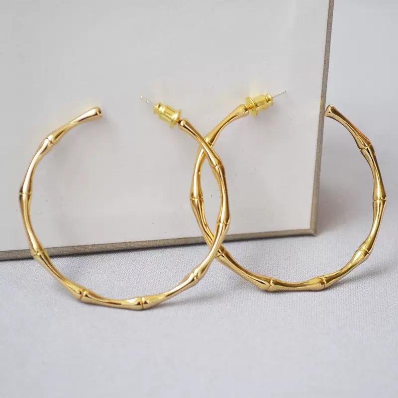 925银针黄铜精致抛光镀金竹节夸张简约大耳圈耳环 quantity