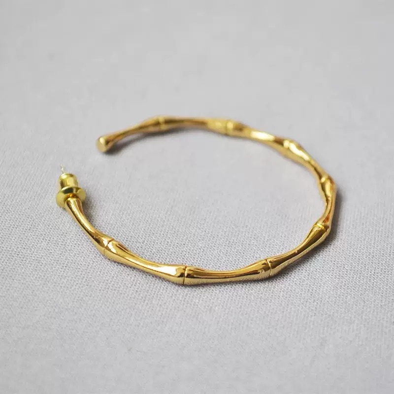 925银针黄铜精致抛光镀金竹节夸张简约大耳圈耳环