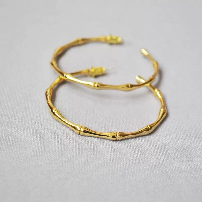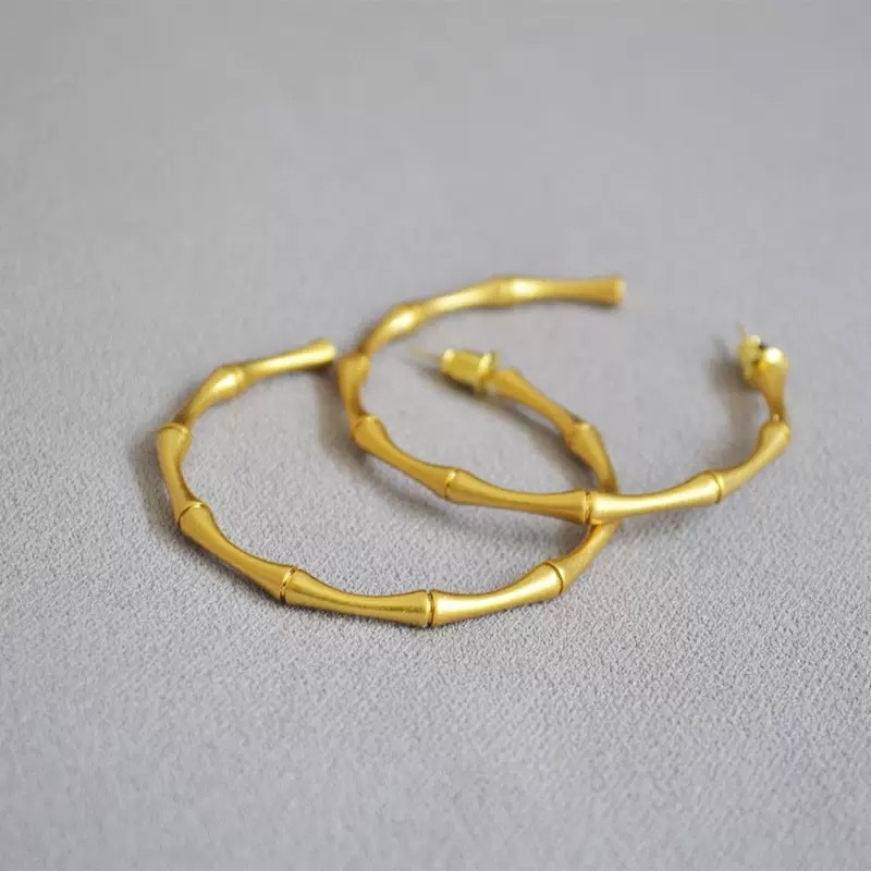 / 925银针黄铜精致抛光镀金竹节夸张简约大耳圈耳环