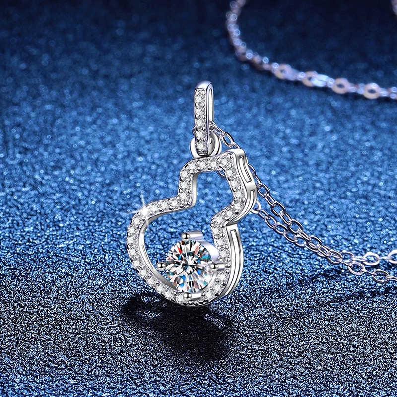 / S925纯银项链莫桑石50分吊坠 经典葫芦锁骨链D色莫桑石项链