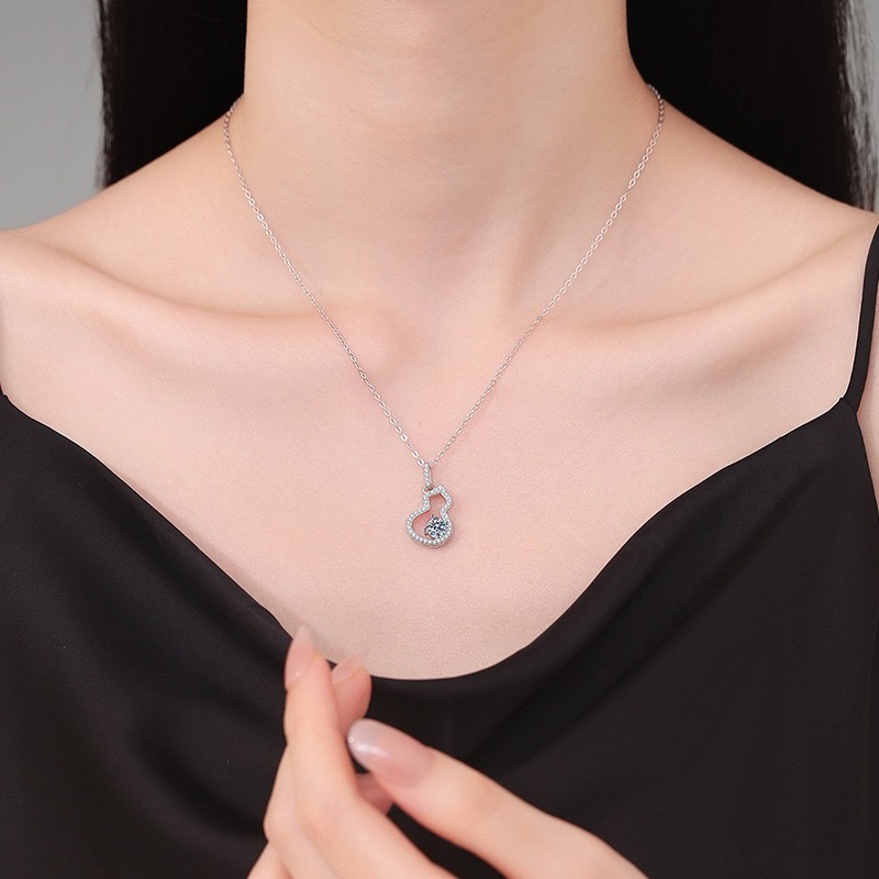 S925纯银项链莫桑石50分吊坠 经典葫芦锁骨链D色莫桑石项链 quantity