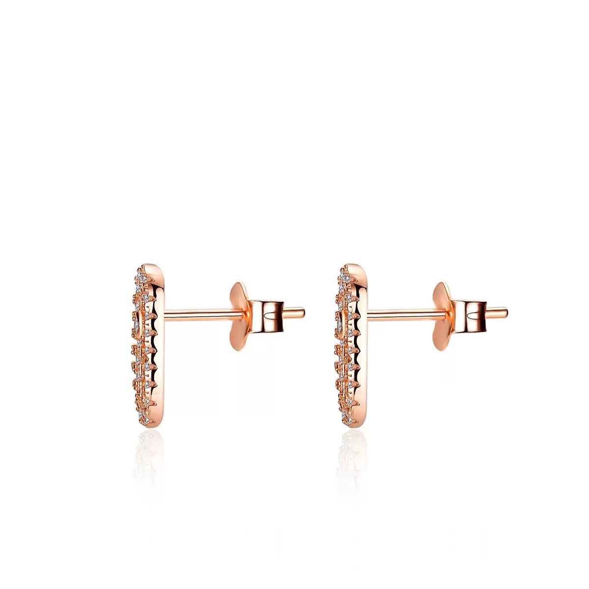 s925银别针耳钉镀玫瑰金简约莫桑石