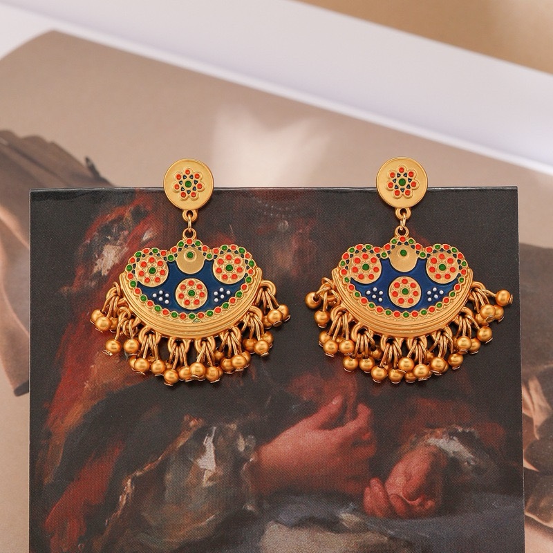 / 法式复古波西米亚流苏滴油耳环 -蓝色印度