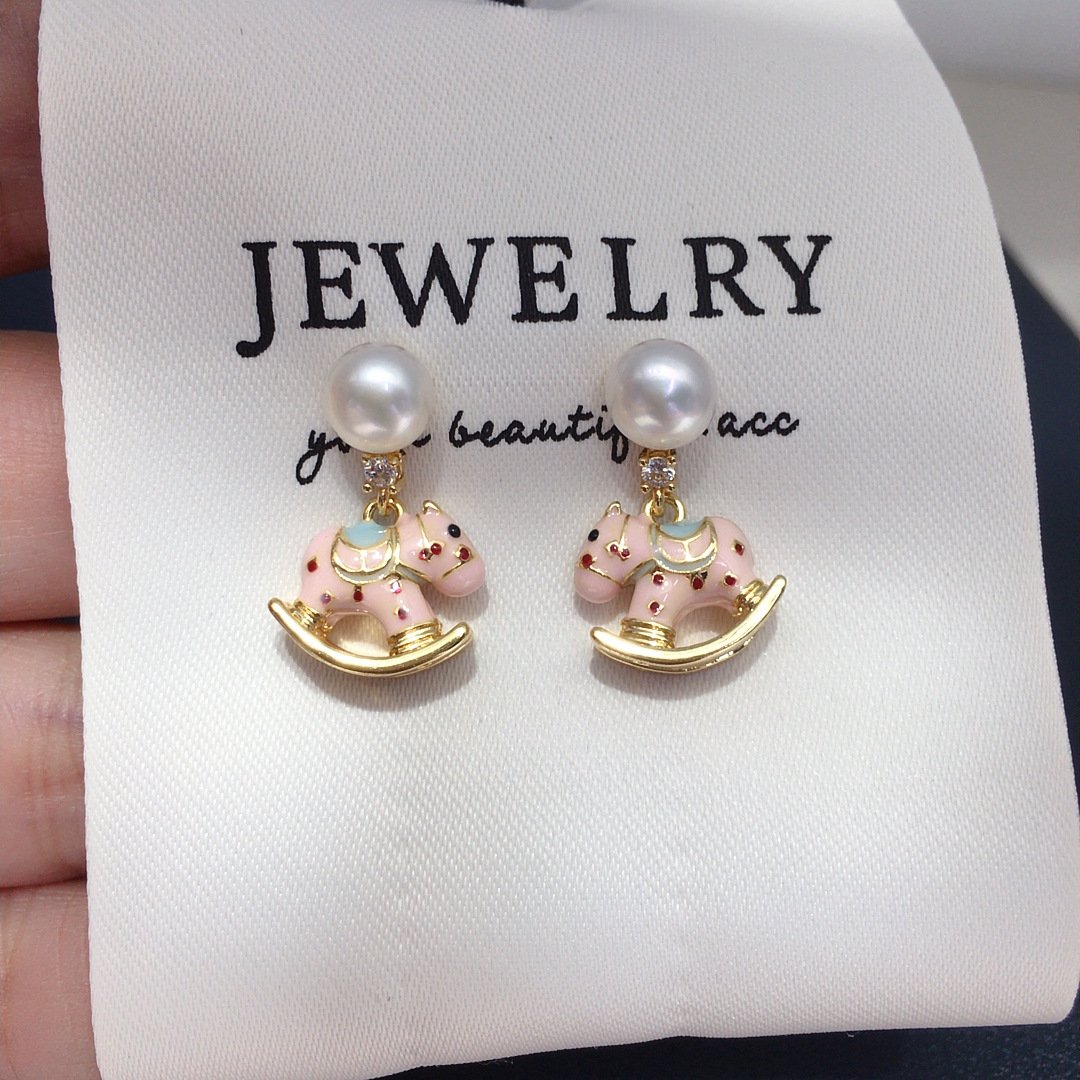 诸暨天然淡水珍珠耳钉童趣立体可爱木马摇椅对称珍珠耳环女 quantity