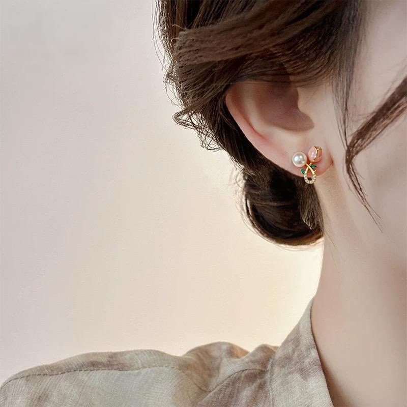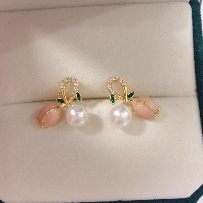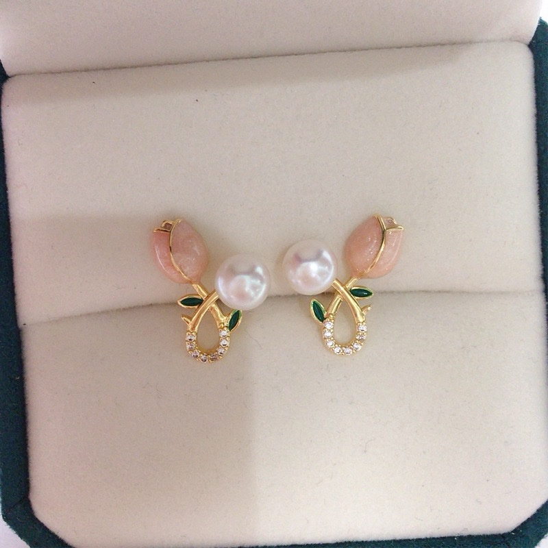 天然淡水珍珠耳环女18K包金粉色郁金香 quantity