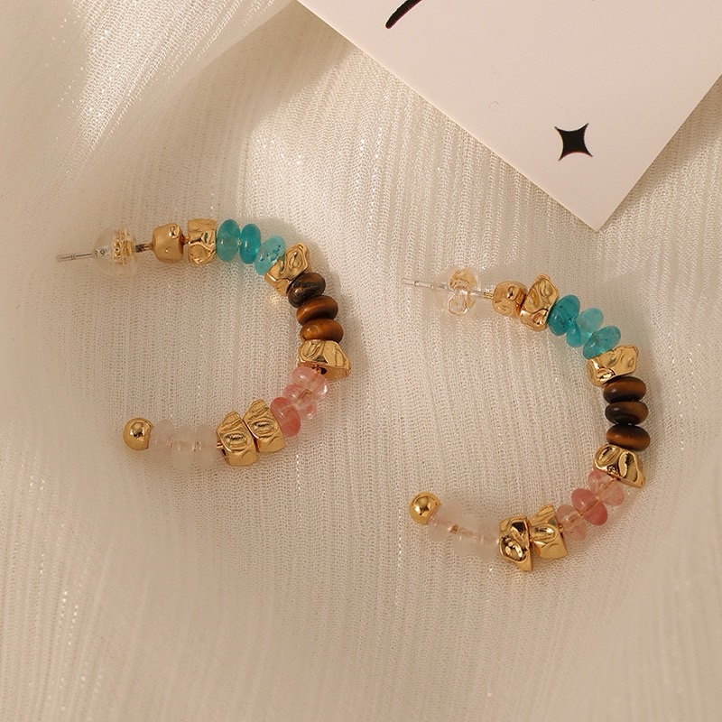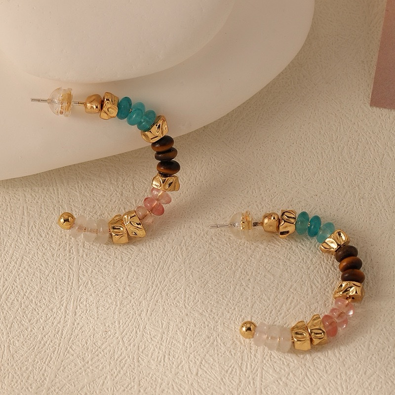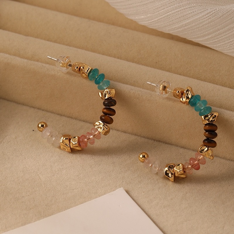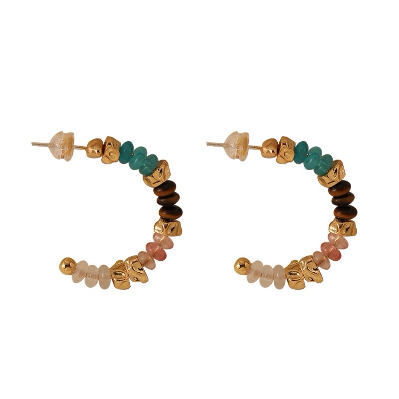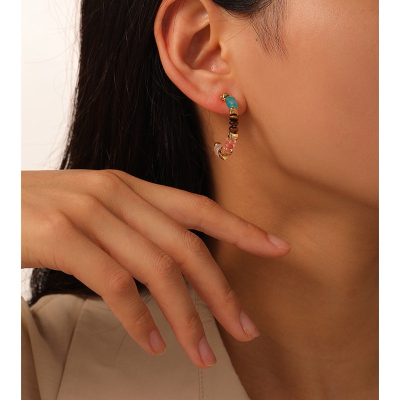 00383 彩色天然石串珠925银针耳圈女 quantity