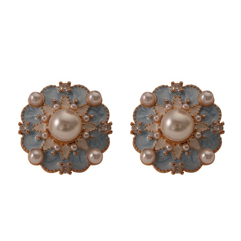 00436 法式新款蓝色滴油花朵耳钉轻奢高级感复古小众气质中古珍珠耳饰女 quantity