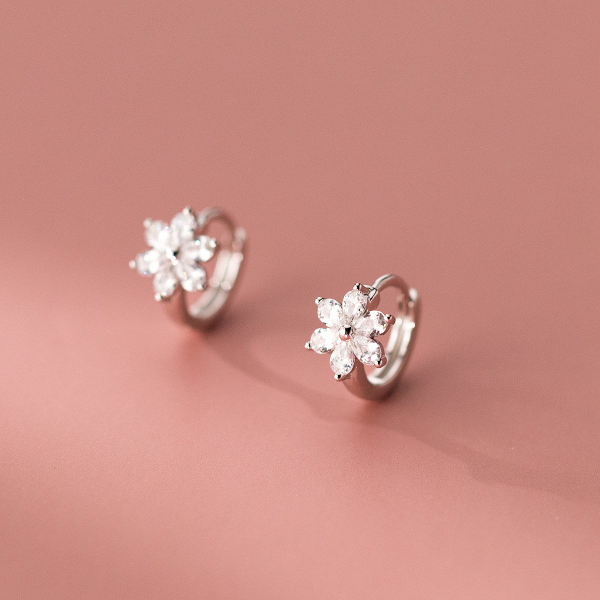 s925纯银清新甜美光珠镶钻花朵耳扣设计感耳饰品 quantity